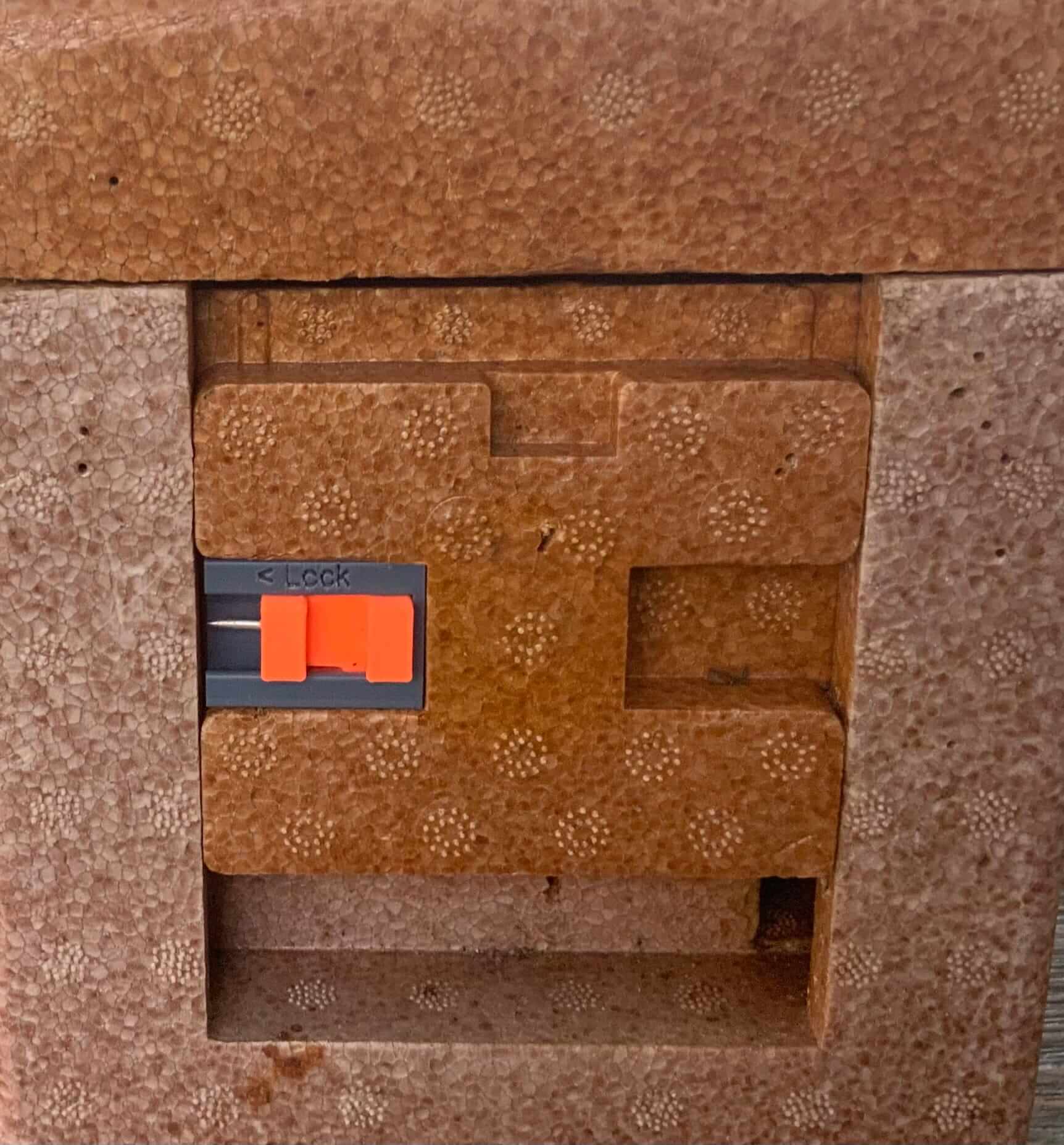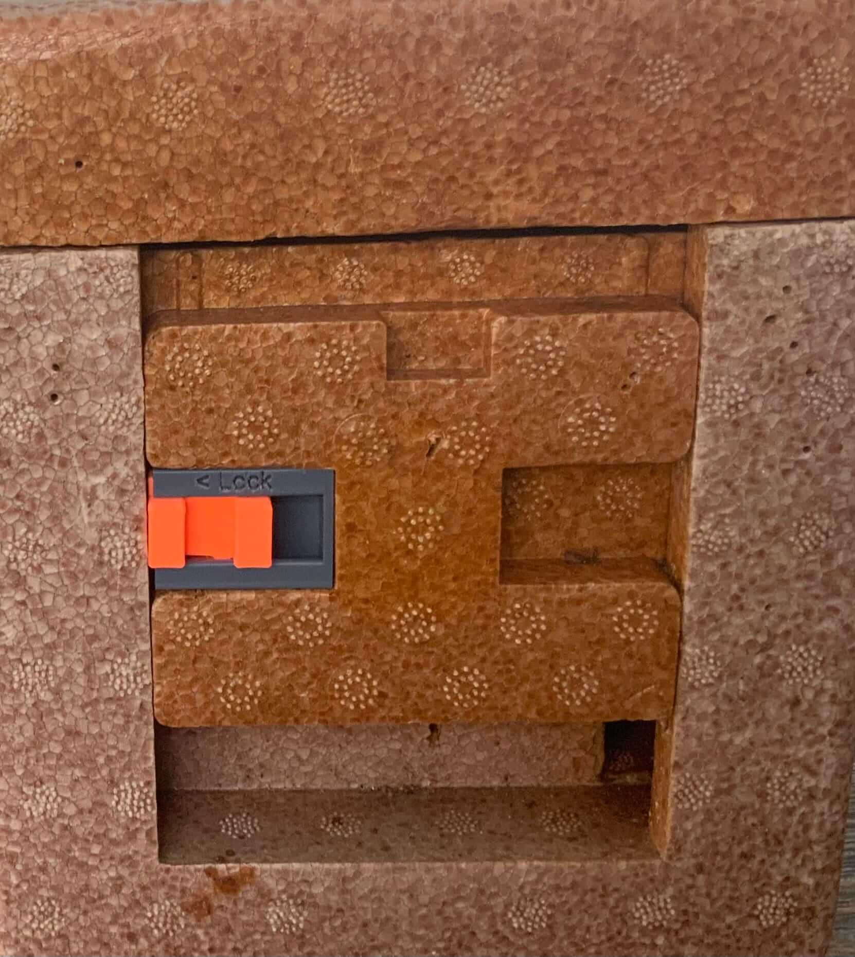 Plaats het sluitblokje in de sleuf aan de voorzijde van het Apidea-kastje.