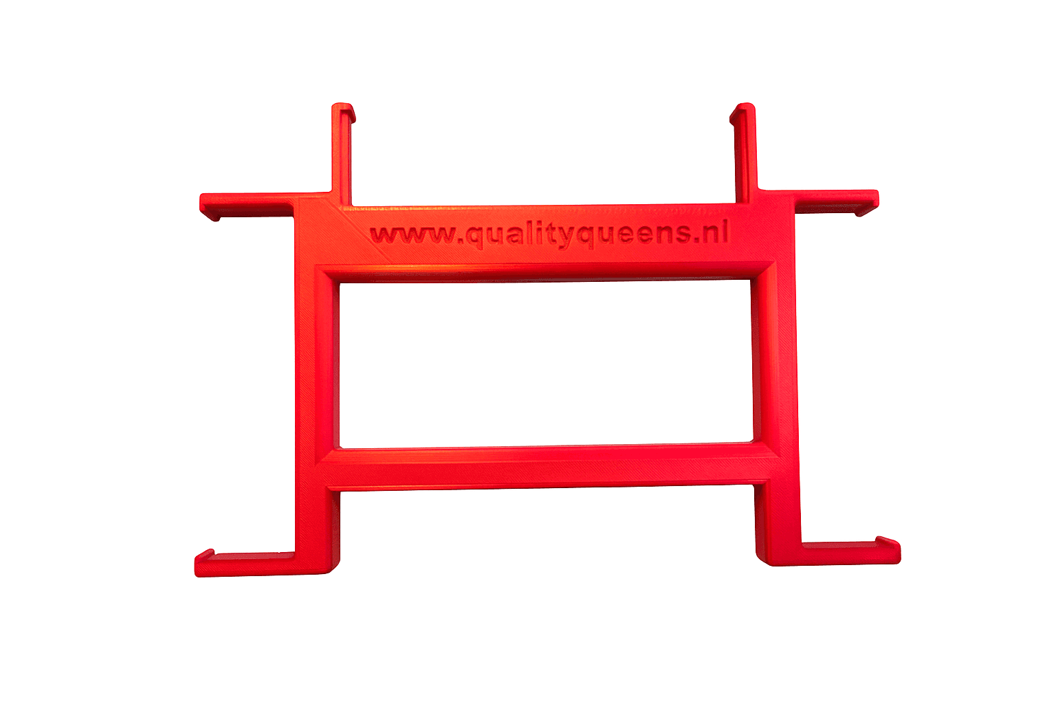 Tijdens een inspectie klik je de BeeDock eenvoudig op de bovenrand van je kastje. De raampjes met bijen hang je er rechtop aan, precies zoals ze in het kastje staan. Zo voorkom je dat bijen of koninginnen geplet worden en houd je beide handen vrij voor een rustige, veilige inspectie.