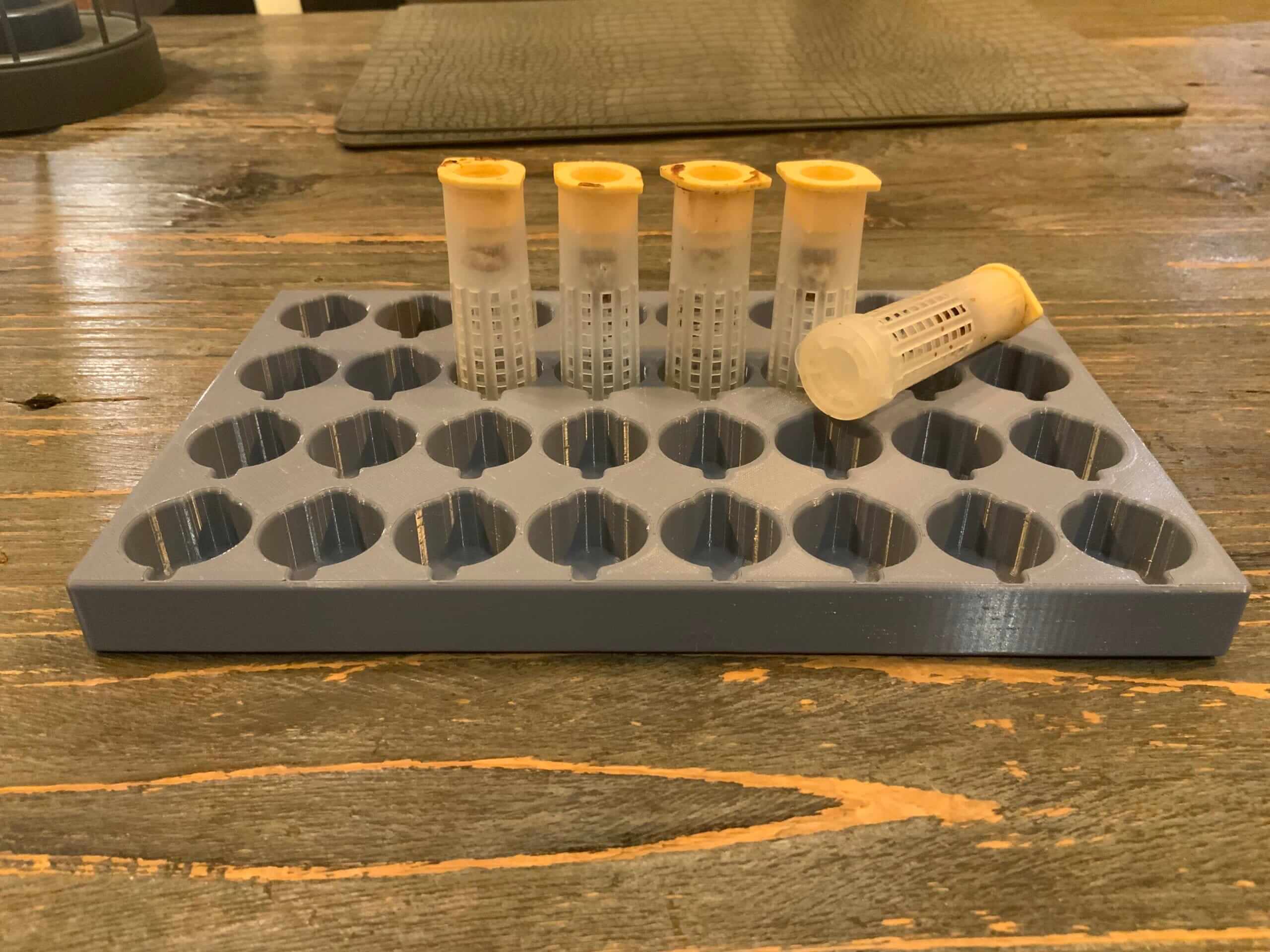 De trays creëren een overzichtelijke werkruimte, verbeteren de luchtcirculatie en zorgen voor veilige opslag tijdens de opkweek- en uitkomstfase van koninginnen.